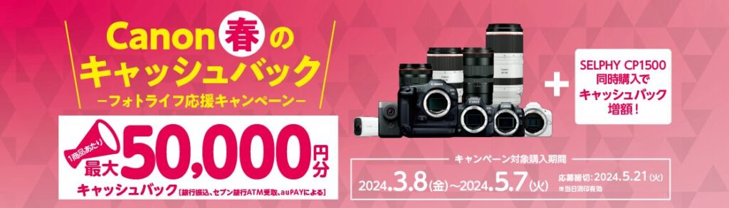 「Canon 春のキャッシュバック フォトライフ応援キャンペーン」